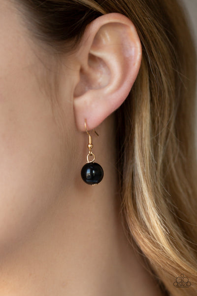 Bubbly black beads swing from the bottom of a hefty gold chain, creating a dramatic fringe below the collar. Features an adjustable clasp closure.