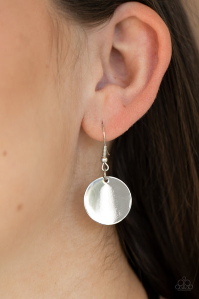 A trio of silver, black, and fuzzy cheetah print discs overlap into an adjustable pendant along rows of shiny black cording for a wildly retro look.