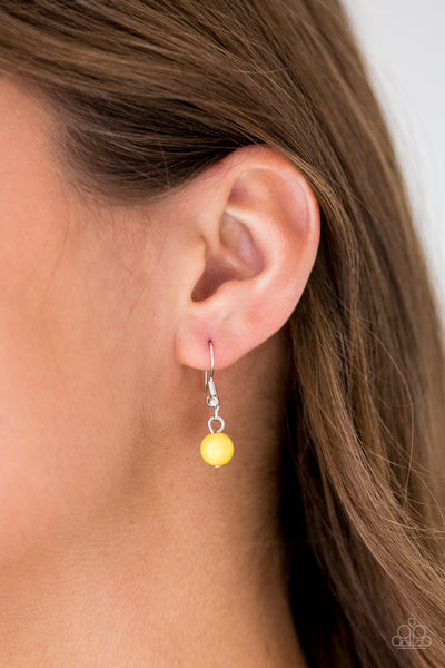 Attached to the bottom of a shimmery silver chain, a row of dainty yellow beads gives way to an ornate silver frame radiating with a beaded silver chain fringe for an adventurous look. Features an adjustable clasp closure.