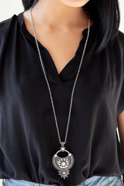 Dotted with dainty white stones, an ornately studded silver frame swings from the bottom of a decorative silver fitting. Infused with a lengthened silver chain, the rustic frame is brushed in an antiqued finish for a seasonal look. Features an adjustable clasp closure.